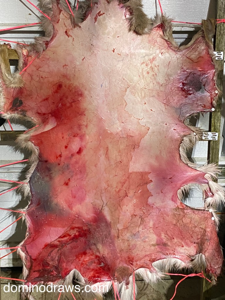 I use preserved animal skins in my artwork. One of the things I like to experiment with is natural tanning. The actual tanning process is a topic for another entry. In the meantime, drying out the hide will help it stay preserved until I have time to finish it.